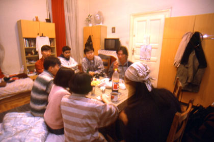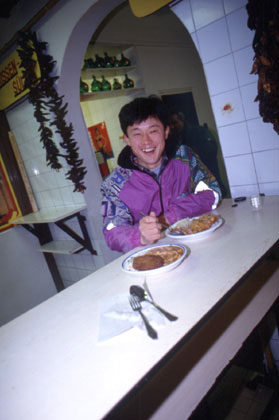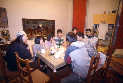 ハンガリー 韓国人も泊まっていたりする。 ![]() 翌朝はのんびりの起床だった。朝の10時にシャワーを浴びて、コーヒーを飲む。走らなくても良いのだから気は楽だ。しかしやりたい事はたくさんあった。 どこの国の日本人宿にも情報ノートなるものがあり、過去に旅行者が書きとめた体験談や情報を読むことが出来るようになっている。ページを開くと、新しい情報から古い情報まで、色々と書かれていた。ロシア情報、ウクライナ情報、旧ソ連の情報には事欠かない。アフリカの情報は今一つで少々淋しいが、とりあえず必要な情報を自分のノートにまとめた。 アジア、ヨーロッパ、南米の建築等を見て回る佐藤さんと、アフリカ情報を少々と南米情報を交換。日本にいたら見ず知らずの人なのに、この宿で一緒になると、同じ旅行をしているというだけで、すぐに打ち解けることができるのだから面白い。 この日はほとんど外にも出ずに、テレザの宿で情報ノートを見て、日本人と話していた。時間は恐ろしく早く過ぎ去った。 このとき宿には、ブラジル在住日本人(日本国籍を持つブラジル人)の通称ナガさんも滞在していた。彼のお母さんは外交官をしているとかで、かなりやり手らしい。彼の発言もなかなか強気で聞いていると面白いのだ。 そんなナガさんの発言が何か引っかかったのか、ブラジル出身のナガさんと、滞在中の日本人との間で口論が始まった。日本の国民性を非難するナガさんの言葉に、佐藤さんと石川さんは猛反発。 「ブラジルや欧米はもっとこうなんだよねー。日本はねー、あーだこーだ・・・」 とナガさん。 「国民性がどうの、歴史がどうの・・・欧米ってさ・・・」 と日本人組も負けてはいない。聞いていると私にはどちらの言い分も、 「フムフム。」 ともっともに聞こえ、まるでコウモリのようにどっちつかず。ブラジル人にも良さがあるし、日本人にも素晴らしい歴史がある。それぞれ異国の環境下で育ち、 「自分の国とは異なっているから変だ。」 と、自分の生まれ育った環境の中で持ち合わせた固定観念を元に、自国や他国を非難するのは、まだまだインターナショナルではない。そう思う反面、それぞれが愛国心を持ち合わせているから、こう口論になるのだ、とうなずくこともできる。 ブラジルで親切にされ、彼らと触れ合った私の口からは、日本を自慢し、ブラジルを否定する意見は出てこなかった。母国を思う気持ちが薄れてきてしまっているのだろうか。自転車野郎に言わせると、 「やっぱり現地に行ってそこの人々と触れ合わなければ。そのためにはやっぱりちゃりんこが一番ですよ。」 という結論になってしまうのだが。もし佐藤さんや石川さんがすでにブラジルに行って人々と語り、飲み、触れ合うという経験をしていたら、ブラジル人のナガさん側について対抗していたかもしれない・・・。この日も結局討論会に参会してしまったので、午前1時過ぎまで話してしまった。変な面々が集まっていたので色々と勉強になる。 毎晩、日本人旅行者の皆と飲んでは話し、笑い、また飲んでは…の繰り返し。本当にくつろいでしまい、精神的にリラックスできる。 「長旅に疲れているのだろうか…。いや、まだまだこれからだ。アフリカも待っているんだ。ここで休んでおこう。」 翌日、旅行者と一緒に最初に「人民食堂」に出掛けた。地元の人達が行く「人民食堂」は安くてうまくて量もある、トルコ料理風の店だ。辛味の効いた牛肉スープにご飯に野菜と、私のような自転車野郎にはたまらない穴場で、一緒にいた川端さんと大喜び。 「うまい、うまい、ハンガリーは最高だ。」 と、250円で腹いっぱい食べてしまった。