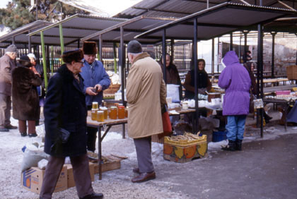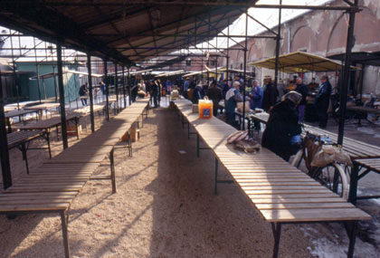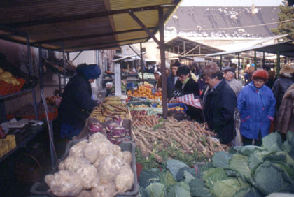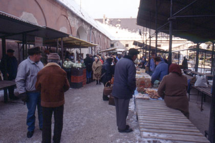 ハンガリー 1泊が800円。質もよく物価も安い。こういう国には旅行者がたくさん集まっているはず。 ![]() 翌朝1月13日。私はハンガリーの首都ブタペストを目指した。ブタペストには、日本人旅行者の集まる事で知られるテレザハウスという宿がある。私もそこに滞在する予定だ。きっと日本人旅行者の旅の話や情報が聞けるはずだと楽しみにしていた。 バーツの町中には小さなマーケットがあったので、少し見学して行く。小さい規模であるが、白い息を吐きつつ、活気のあるやりとりをしているのに魅力を感じた。