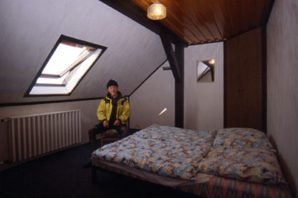 ハンガリー テレザハウスの中。 ![]() 果たして、テレザさんとはどういう女性なのかと色々想像していた。きっとすらっとした体系で、美人で日本語をたくみに操り、頭の良い、日本人好きな女性ではないかと。ところが、彼女はそんな私の期待を裏切って登場した。 「オー、トゥデイ、ノーツーリスト。」 と言いながら玄関から太ったおばちゃんがやって来たのだ。彼女こそ、このペンションのオーナー、テレザさんである。日本語+英語+ハンガリー語は、通称「テレザ語」と言われており、理解はきわめて困難。彼女に、 「どのくらいいるのか?」 と聞かれたので、 「2週間くらいかもしれない。」 と答えると、テレザさんはそれは嬉しそうにするのであった。あまり嬉しそうで今にも抱きつかれそうになったが、それは勘弁してもらった。この宿は長期滞在者大歓迎なのだそうだ。とにかくここで旅も半分を迎えているし、私は、 「休息だ!」 と、しばらくこの宿でゆっくりと過ごす事にした。 「50カ国を走ったのだから・・・その中休みだ。」 そう妥協した。この夜、日本人旅行者達と、今までの旅の話、アフリカの話、ハンガリーの話、テレザの話といろいろな話に花を咲かせ、夜中の2時まで語り合った。 「やっぱり、日本人と話す日本語はいいもんだ。」