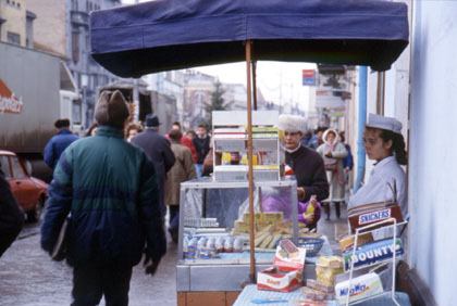 ルーマニア 路上の売店で。売り子がどこか悲しげな表情を浮かべている・・・。
