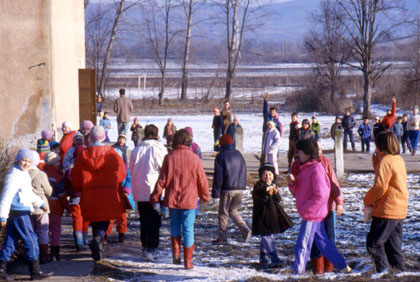 ルーマニア 寒い夕刻、元気に玉ねぎを売っていた少年たち。
