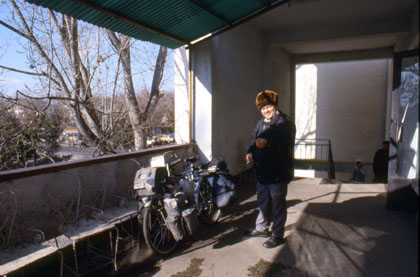 ルーマニア 「食事を一緒しよう」と誘ってくれたトゥルグムレシュの男性。 ![]() 昼食を注文すると、最初に野菜の入ったスープが出てきた。これはなぜか少し酸っぱい味がする。でもきっとこう言う味なのだろうと我慢して飲む。その次はポテトとポークソテー。これはなかなかいける。もう一つの小さな皿にはパンとキャベツの漬物。キャベツの漬物は酢漬けみたいな感じで、最初は抵抗があったが、ハンガリーでもルーマニアでもこれがサラダとして出されており、食べ続けていたら最近ではおいしく感じるようになってきた。 食事は全部で4000レイ、約240円。腹の空いている自転車野郎なので抵抗無く食べられるが、もし私が日本から直接やって来た場合はメニューの貧弱さに、少し驚くかも知れない。食事内容は街の大きなレストランでさえ決して良い品とは言えなかった。 食事の途中に私は一応地図などを広げて、 「ここをこう走ってきたんですよ。」 と誘ってくれたおじさんに旅の足跡を説明したりした。 このレストラン前には、地元の働き盛りの男たちがうろうろしている。やはり仕事に就けない人々が多いようだ。暇そうにしている所に私のような変な格好をした自転車野郎がひょっこり現れるから、私はかっこうの餌食、暇つぶしの材料として相手をさせられる事になってしまう。