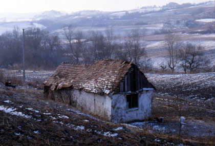 ルーマニア 途中で見た小屋。撮影した意味は特にないが・・・田舎でのひとコマ。 ![]() 曇り時々晴れという気まぐれな天気のこの日、何としてもブラショフへ辿り着きたいと思っていた。昨日はシギショアラでゆっくりと観光をしてしまったので、ちょっとペースを上げて少しでも前へ進まなければならない。 とある村でジュースを買いに一軒の店に入ると、2、3人のおじさんがウォッカ片手に朝から飲んでいる。どこの食堂やBARに寄っても、時間に関係なく、たいがい誰か酒を飲んでいるから相当なものだ。 「そんなに飲んでばかりで、ルーマニアの男たちは大丈夫だろうか?」 と心配にもなってしまうのだが、きっとこの寒い時期はウォッカでも飲まないと体が冷えてしまうのだろう。