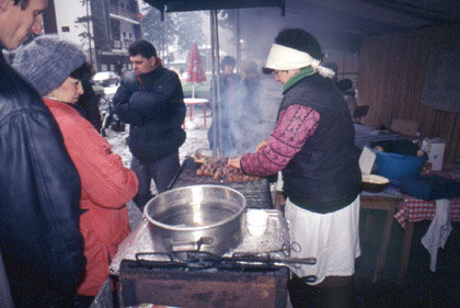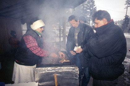 ルーマニア 美味そうな肉の焼き上がりを待つ地元の人々。いい匂いがぷ〜ん。
