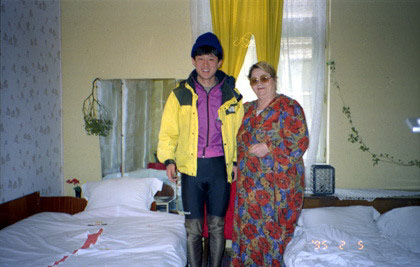 2月5日、日曜日。安宿の管理人、ノバックアナさんにありがとうを言い、部屋で写真を撮って出発する。