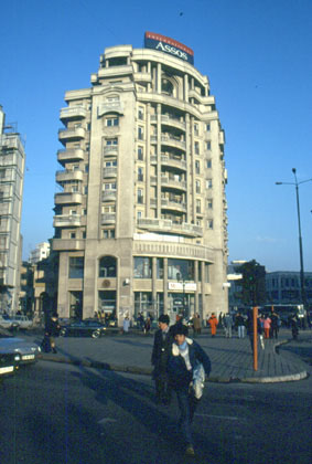 ルーマニア ブカレストの街並。 ![]() ガイドブックもなく、何の情報もなしで宿探しを始めた。果たして安ホテルは見つかるのか不安になるが、この日は時間もあったので、宿探しも少し楽しむ余裕があった。しかしホテルの価格を見ると、 「6000円?高い・・・。」 そして、次は5万レイ(3000円)。 「んーまだまだ安いのはある。」 辺りにいた人にホテルの場所を聞いてみるが、高いのを教えてくれる。そこで、ホテルの駐車場に居たガードマン風の男に聞くと、安いのを知っており、指示通りに教えられた所に行くと4万レイ(2400円)。そこから更に少し行った所に3万6千レイ、約2000円のホテルを見つけ、結局ここに1泊落ち着くことになった。ブカレストのホテルとしたらまあまあか。でももっと安い宿はあっただろう。