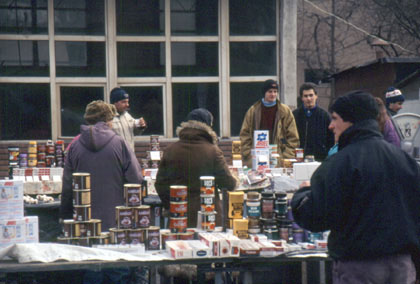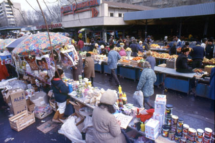 ルーマニア 年齢は高校生くらいだろうか。両替所にやって来る旅行者にうまい話を持ちかけてくる。 ![]() 両替商ばかりを相手にしていてもしょうがないので、その後は市内中央にあるデパートやマーケットに足を運んだ。 「ここが本当に一国の首都のデパートか?」 と思うような品ばかりが並んでおり、ちょっとショックを受けた。