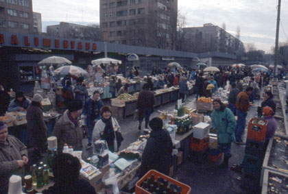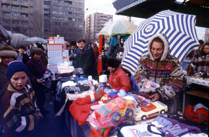 ルーマニア 必至にマーケットで商品を売りさばく庶民。