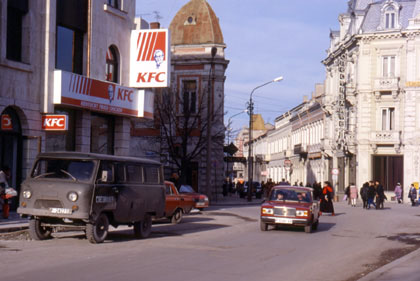 ブルガリア 街の様子。 ![]() 風邪気味なのか少し体調が優れない。私はおとなしくして、安宿の狭い部屋で走行の記録などをまとめることにした。自分の走って来たルートを地図上に記入したり、日記を書いたり、またその日記をカセットテープに吹き込んだりして過ごした。 お昼は街中でケンタッキーを見つけたので、肉のスープとフライドチキンを5本、サラダを250グラム、それにオレンジを2個腹に詰めた。夜は夜で、明日からの走行に備え自炊をして、卵5コ(?)を食べるなどした。こんな事をしているから具合が悪くなるのかもしれない・・・。とにかく明日の為に、がんがん食べまくった。 「最近は疲れ気味だなあ。もっと食わねば・・・。」 と。