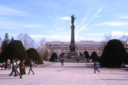 ブルガリア ブルガリアの通貨レバ。 ![]() 翌日2月8日。朝一でコーヒーとパンケーキを腹に詰め込み、電話局へ出向いた。このときはガイドブックひとつも持っていなかったために全てが手探り状態で、電話局がどこにあるかも分からず四苦八苦・・・。ブルガリアの文字も分からなければ、当然読めもしないし、喋れもしない。しかし街行く人に聞いたりしながらようやく電話局に到着。とにかく実家に電話1本入れようと試みた。普通の公衆電話では通じないのか、多くの人がどこかに電話をかけるべく列を作って待っていた。私の順番が来たので、係官に番号を告げると、1、2分待たされる。そしてしばらくすると、 「No.90のボックスへどうぞ。」 とジェスチャーで指示されるので、その中で、 「もしもし?」 と言うと、まだ日本には繋がっておらず、交換手らしき人が、 「日本の電話番号をもう一度言ってもらえますか。」 と言うので、 「0266−58−XXXX。」 と伝える。交換手の人とは英語でのやりとり。しかし自宅はどうやら不在らしい。 「プルルルル、プルルルル・・・」 と言う日本の呼び出し音はちゃんと聞こえていた。 「なんだ留守か。せっかくかけたのに。」 知らない国、それも途上国から初めてかける電話というのは結構厄介だった。 電話局に行った後はルーセの街を歩いた。首都のソフィアまではまだまだ長い距離で、大きな街はルーセくらい。それならとこの街に2泊することに決めた。雪降る中のカルパティア山脈越えが効いたのか、少し風邪気味のような気もしたが、私はカメラ片手にルーセの街の観光をした。