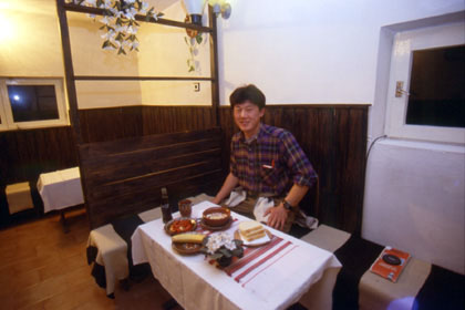 ブルガリア こんな豪勢な夕食が付いて宿泊費は10ドル? ![]() 主人のボギーさんはこれっきり人の良さそうな方で、英語を少し話した。私が、 「今日は出発してから6万km地点を通過したんですよ。」 そう言うと、ワインで持て成してくれた。朗らかなボギーさんの経営する宿で、心底落ち着く感じだった。 「ここまで来て正解だった。」 そう胸を撫で下ろした。ボギーさんは日本人びいきで、 「ジャパンは世界の中で一番見本にしなければならない国だ・・・」 と言っていた。お世辞なのか本音なのかどうかは知らないが、笑顔の絶えないボギーさんと、結局10時頃まで日本の事や私の旅の事などを話した。