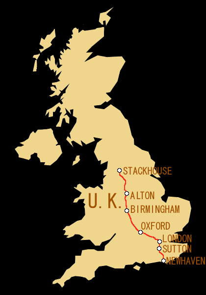 イギリス走行 1995/5/26〜1995/7/6 及び 1995/7/10〜1995/7/21 1995/10/31〜1995/11/16 1997/5/30〜1997/6/6 走行距離 約2672km ![]() |