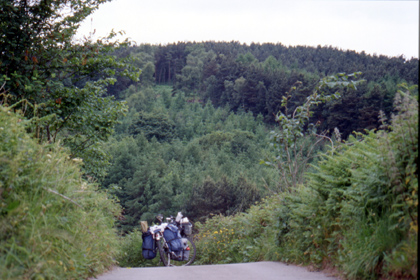 イギリス 緑に囲まれた小さな田舎町に立ち寄りながら・・・。 ![]() 日照時間も長く、ここのところ走行は午後の8時までと言う日が多かったので、この日は早目にユースに飛びこもうと決めていた。しかし、当てにした1軒目のユースはなぜかやっておらず閉館。 「こりゃまいった。」 しょうがないと、そこから更に10km程北に位置するユースを目指した。ところがこのユースは30分待っても戸は開かず、居るのか居ないのかもはっきりしない。このまま待っても開くかどうか疑問なので、 「今日は野宿かな。」 そう思いながら、近くのレストランに水をもらいに寄った。すると、 「あら、ユースホステルに誰もいない?それならあの道の向こう、あの庭、あそこでキャンプできるわよ。」 などと言うではないか。普通の一般家庭の広い庭先をそのままキャンプ場として旅行者に開放していると言うのだ。こんな便利な「小さなキャンプ場」があるなんて信じられない。値段が高いのかと思いきや、たったの1ポンドだと言う。もちろんトイレ・シャワーも使わせてもらえる。イギリス国内の旅行事情、旅のし易さには感心させられてしまう。