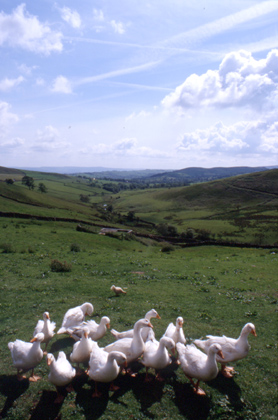 イギリス ハッダースフィールドの町中を走り抜けようとすると、「おはよう」と声を掛けてくれた爺さんがいた。 ![]() 地元の人々が生活しているすぐ近くをゆっくりと走る事の多い自転車旅行では、1日に何度もこうしたやり取りに接する。その都度私は感心したり、感動したり・・・。こうした触れ合いが多いと走りがいもある。 快晴に恵まれたこの日、ほぼ1日中青空の下の走行が続いた。見慣れた放牧風景のはずだが、その美しさには飽きる事もなく、ペダルを踏み続けた。これでもかと言う数の牛や羊たち。ときにはアヒルや鶏の姿もあった。