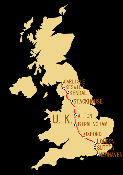 イギリス走行 1995/5/26〜1995/7/6 及び 1995/7/10〜1995/7/21 1995/10/31〜1995/11/16 1997/5/30〜1997/6/6 走行距離 約2672km ![]() |