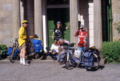 イギリス イギリス独特の品々が食卓に並んだ。 ![]() ユースでは、マンチェスターから湖水地方を経由して来たと言う年輩のサイクリストに、美しい見所などを教えてもらった。 「このルートがいい、ここに寄るといい風景に出合える・・・」 等など。いつどこの国のサイクリストと出会っても、気軽に情報交換出来ると言うのが楽しい。互いに目的が共通しているから話題も合う。 出発時には皆で記念写真。お互いが自転車を見せ合い、 「へーこんな自転車で世界を?」 などと言ってくれたり。乗っている自転車にもその人の個性が出るというのもまた面白いもの。以前出会った、アメリカのマイケルの自転車などは、彼の気質を表しているかのように気合いの入った、重量のある使い込んだ「自転車」だった。