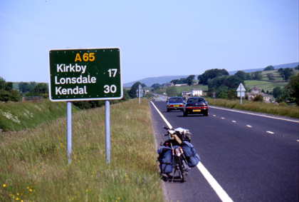 イギリス まるでデザインされているかのような土地が続いている。 ![]() ハイウェイ横の野原で、パンと同じみのビーンズ(豆缶)を食べながら、緑の大地を進んでいく。それにしても周囲に見る風景は緑が多く気持ち良い。 ケンダルという町を過ぎたあたりから観光客の姿も増え始め、マイカーも多く見るようになってきた。湖水地方はリゾートのような感じもする。大きな湖とそこに浮かぶ島、芝生をトコトコ歩く羊。湖畔では釣りをする人々。周囲はまるで時間が止まってしまったかのよう。かつて私が走った日本の最北限の島、北海道の礼文島の風景に雰囲気が似ている。 「こんなところで農場経営でも行ったらきっと気持ちがいいんだろうなあ。」 などと単純に思ってしまうほど、緑豊かな風景は広がっていた。時々ぺダルを踏むのをやめては胸いっばいに空気を吸い込み、辺りをぐるりと見回したりした。