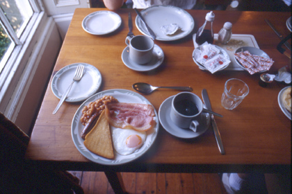 スタックハウスのユースホステルでの朝食は、ワイワイガヤガヤと騒ぐ子供たちと一緒する事になった。どこの世界の子供たちも皆同じだなあと、元気に駆け回る様子を見て思う。卵にべーコン、コーヒー、紅茶、パン、煮豆。イギリス独特の朝食を腹に詰め込んで今日も出発することに。