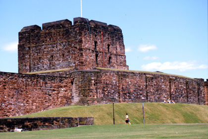 イギリス スコットランドに入る前にあった古城で一休みしていく。 ![]() 快晴の中、気温は25度にまで上がった。北上して来ているが、かなり強い日差しが肌を刺すようになってきた。 「いよいよ夏だな。」 途中のスーパーで食料の買い出しなどをしながら、カーライルを通過。道沿いの城を眺め、休憩を挟みながらひたすら前進。6月23日、ようやくイギリス北部スコットランドにとやって来た。