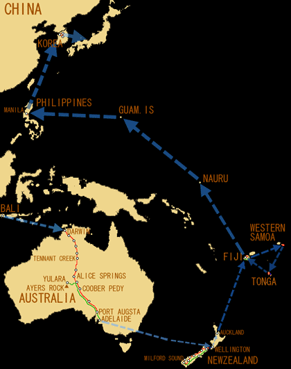 オセアニア・南太平洋・東アジア走行 1998/2/14〜1998/5/15 走行距離 約5073km ![]()