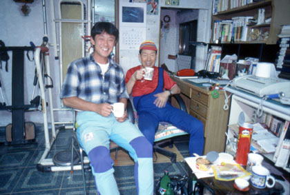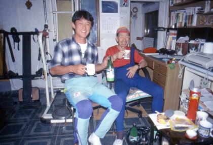 韓国 とにかく元気な爺さんだった。 ![]() 張さんは韓国ではちょっと有名な「自転車爺さん」との事で、新聞やテレビなども多々出演された様子。その切り抜きなどを見せてくれた。夜中の12時を過ぎても話が尽きる事はなかった。とにかくよく喋る人で、話題も豊富。私は張さんの話を聞くばかりだった。結局12時から朝の5時まで話しっぱなしで、もう脱帽。張さんは毎朝、早朝数十kmのサイクリングを行っていると言う。毎日の日課が壁にびしっと貼られてあった。 「1時間休んでからサイクリングに行こうか?」 チョウさんがそう言った。しかし、 「いえ、このまま走りに行きましょうよ。」 と言ってやると、さすがの鉄人張さんも、驚いた様子で眉毛をピクピクさせていた。 「ハッハッハ。私も爺さんには負けてはいられないのだ。」 結局我々は一睡もせずに、早朝サイクリングに出掛ける事になった。市内にはソウルオリンピックに合わせて作られたと言うサイクリング道路があり、そこを二人で走った。