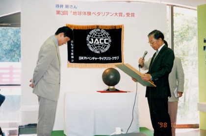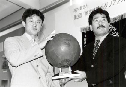 日本 スイスで出会った高岡さん、徳永さん高岡さんと。 ![]() 懐かしい知人と挨拶を交わしていると、授賞式が始まった。司会は台湾を一緒に走ったクラブの松坂さん。何気なく考えていた受賞式だったが、いざ式が始まると気持ちが高ぶった。 そして、クラブの竹沢代表に、 「あなたは、前人未到の・・・」 そう表彰状が読み上げられると、こらえていた涙が一気に溢れ出した。