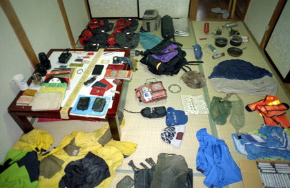 日本 荷物を広げ、出展する装備をまとめた。 ![]()
