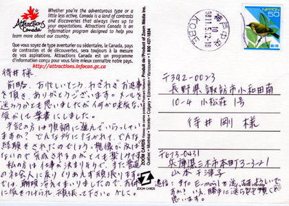 乱文乱筆極まりない手紙・・・おまけに30円足りなかった。恥ずかしい。 ![]() ざっと書いてしまった葉書だったが、1週間後にはこの女性からお礼だと言ってポストカードが届いた。 「丁寧な人だなあ。」 このときそう思った。